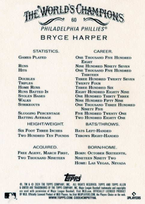 2024 Topps Allen and Ginter Bryce Harper #60 - Hyper Phillies