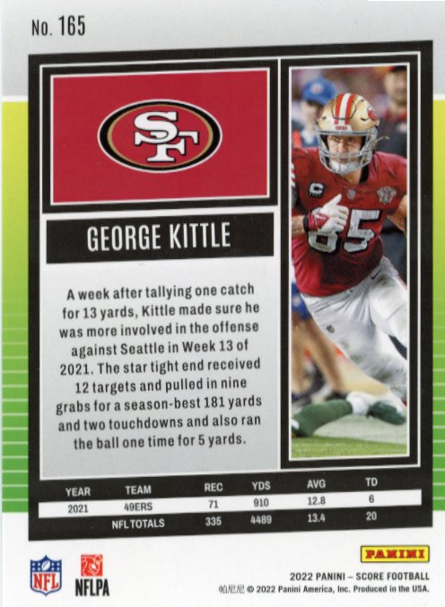 2022 Panini Score George Kittle #165 - Green #/99 49ers