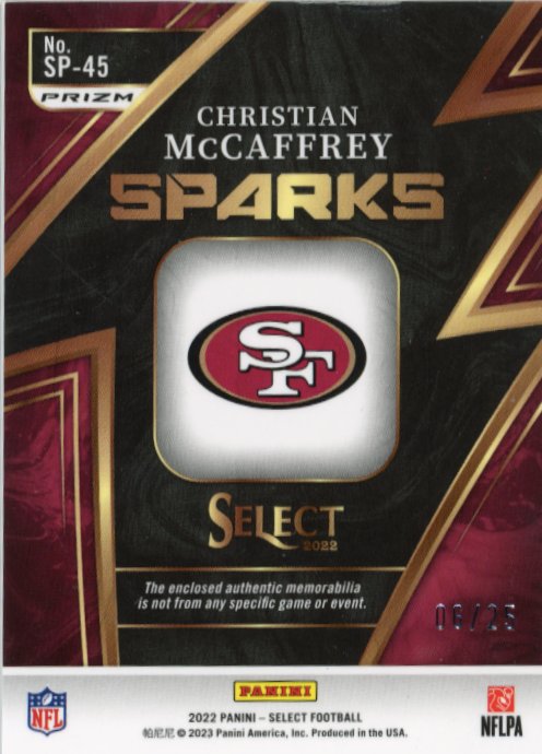 2022 Panini Select Christian McCaffrey #SP-45 - #/25 Tie-Dye Patch 49ers
