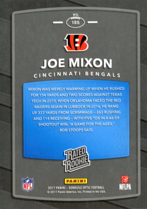 2017 Panini Donruss Optic Joe Mixon Rated Rookie RC #185 - Bengals