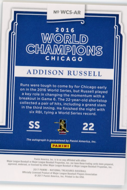 2017 Panini National Treasures Addison Russell #WCS-AR - #/49 Autograph Cubs