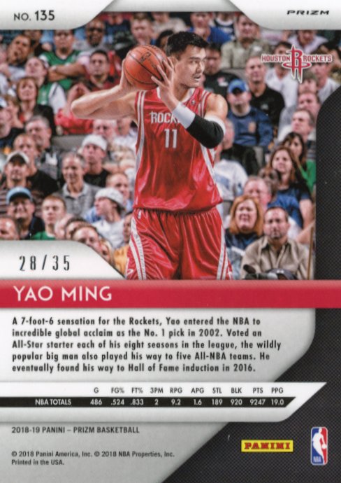 2018/19 Panini Prizm Yao Ming #135 - Purple Pulsar #/35 Rockets