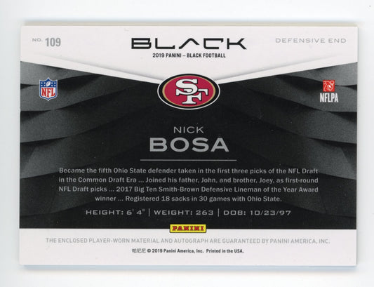2019 Panini Black Nick Bosa Rookie #109 - #/75 Patch Autograph 49ers