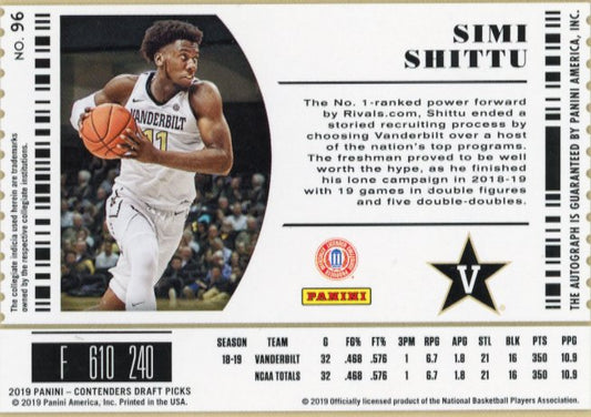 2019 Panini Contenders Draft Picks Simi Shittu #96 - Autograph Gold #/18
