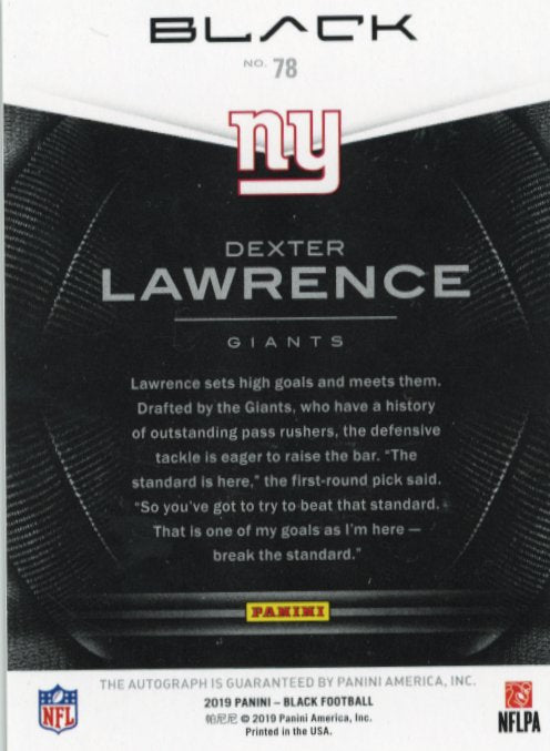 2019 Panini Black Dexter Lawrence RC #78 - #/75 Autograph Giants