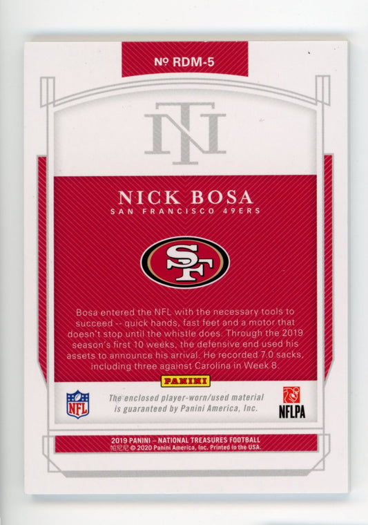 2019 Panini National Treasures Nick Bosa #RDM-5 - #/97 Red Jersey Auto 49ers