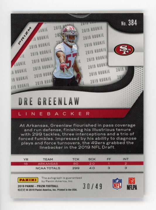 2019 Panini Prizm Dre Greenlaw RC #384 - #/49 Pink Mosaic Auto 49ers