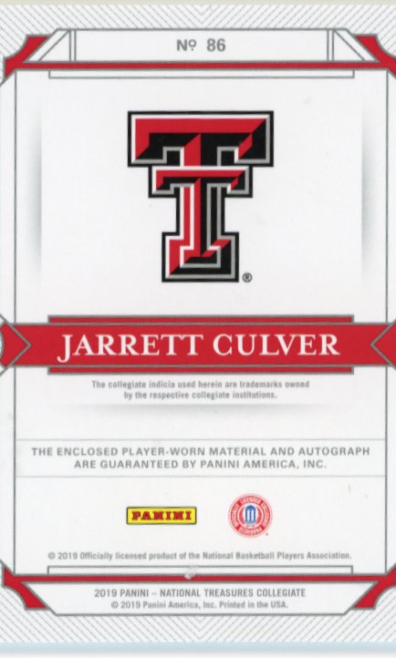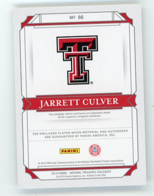 2019 Panini National Treasures Jarrett Culver RC #86 - #/25 Patch Autograph Red Raiders