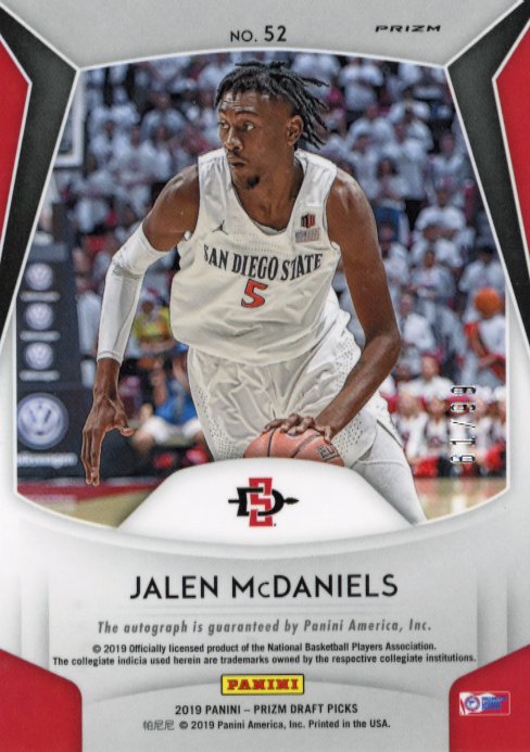 2019 Panini Prizm Draft Picks Jalen McDaniels Rookie RC #52 - Autograph Red Checkered #/99