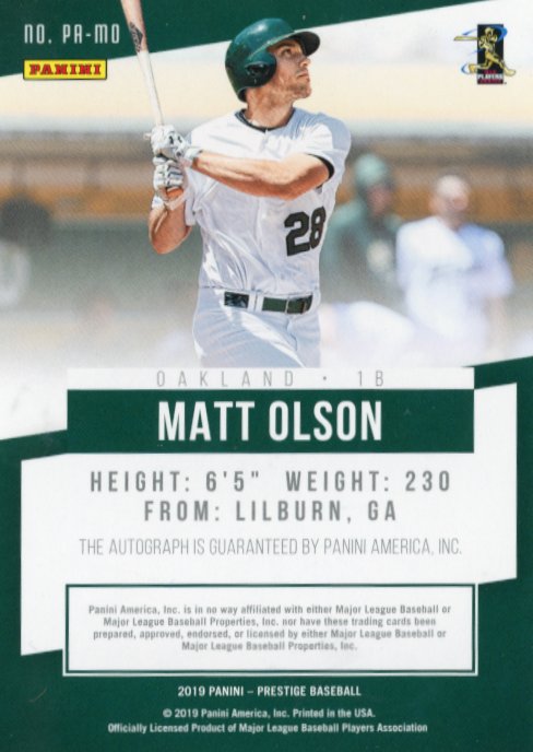 2019 Panini Prestige Matt Olson #PA-MO - #/23 Autograph Athletics