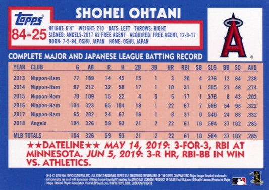 2019 Topps Shohei Ohtani RC #84-25 - Angels