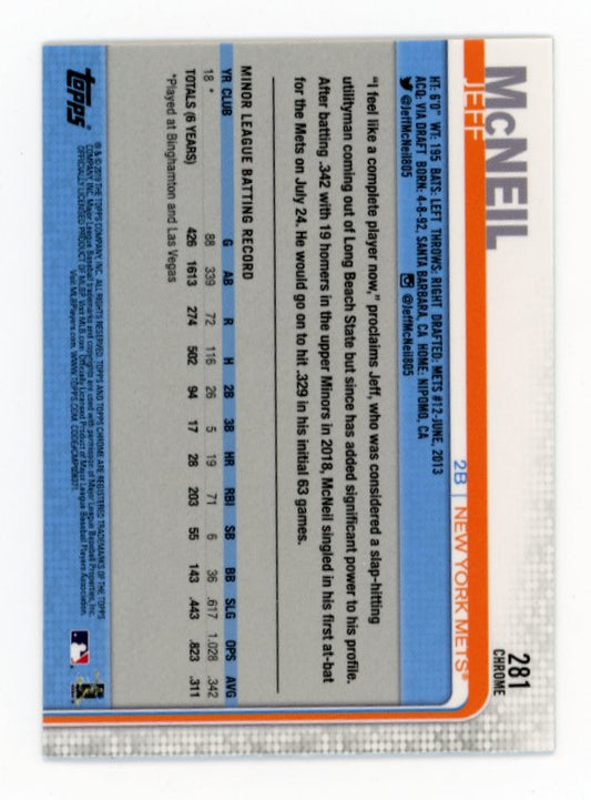 2019 Topps Chrome Jeff Mcneil RC #281 - Sapphire