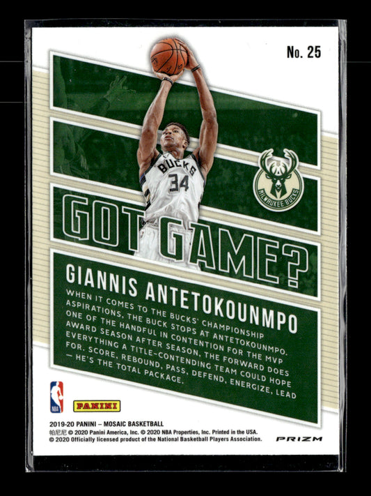 2019-20 Panini Mosaic Giannis Antetokounmpo #25 Got Game? Green Milwaukee Bucks