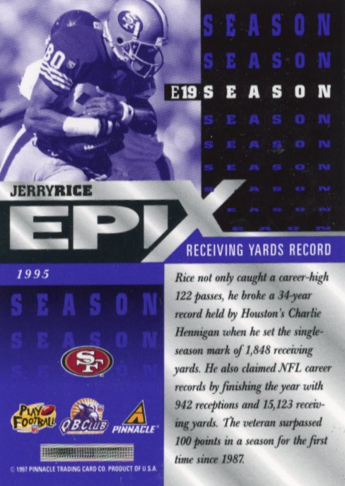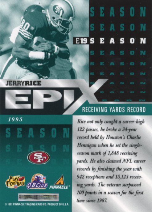 1997 Pinnacle Jerry Rice Epix Season #E19 - Emerald 49ers