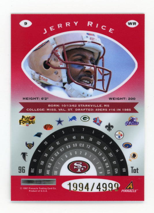1997 Pinnacle Totally Certified Jerry Rice #9 - Red Platinum #/4999 49ers