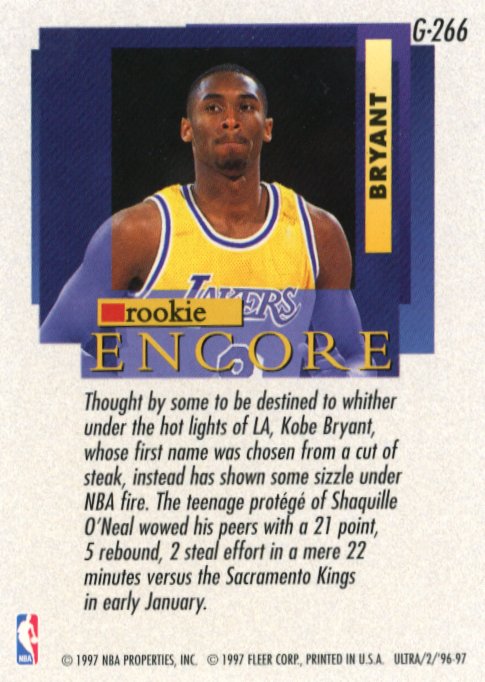 1996/97 Fleer Ultra Encore Kobe Bryant RC #266 - Lakers