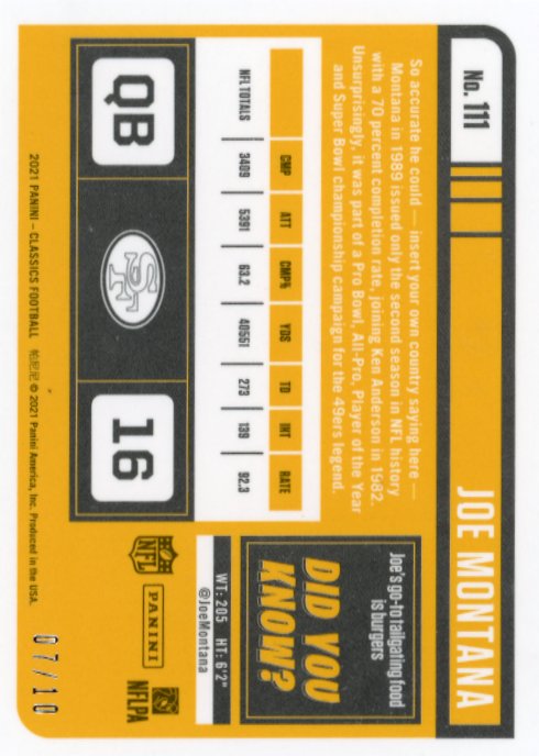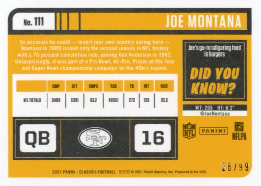 2021 Panini Classics Joe Montana #111 - #/10 Orange 49ers