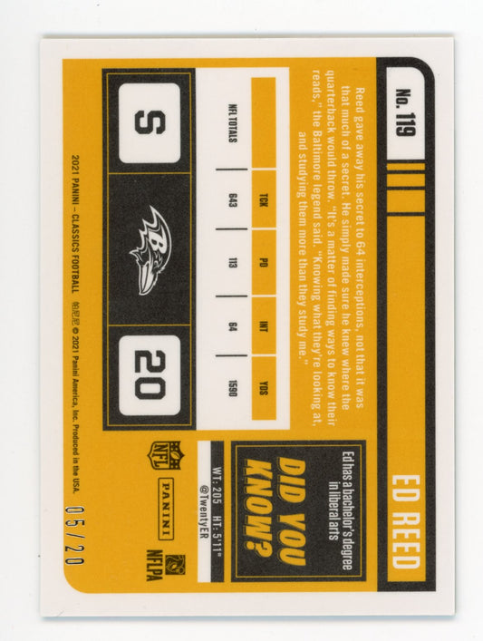 2021 Panini Classics Ed Reed #119 - #/20 Green Ravens