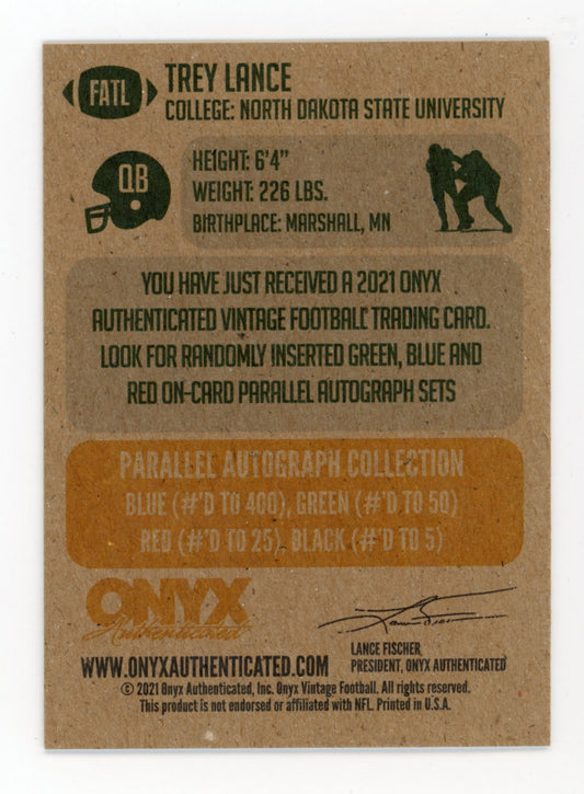 2021 Onyx Vintage Trey Lance #FATL - RC Auto NDSU