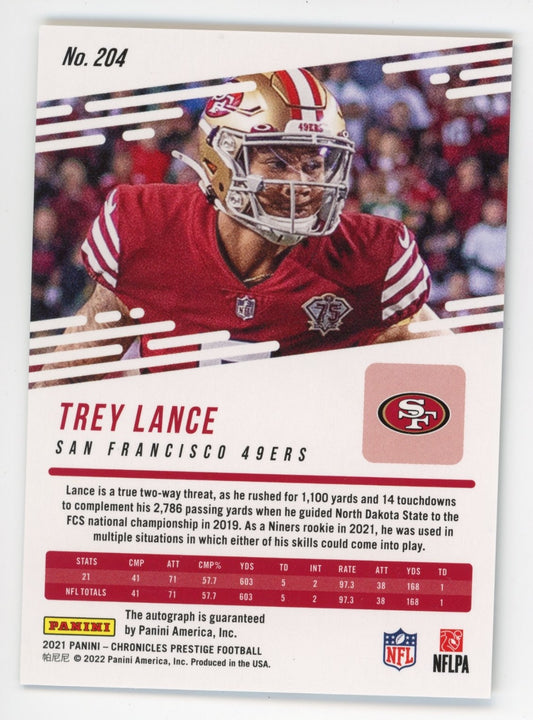 2021 Panini Chronicles Prestige Xtra Points Trey Lance RC #204 - Auto 49ers