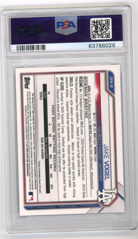 2021 Bowman Jake Vogel # CPAJV - PSA 10 Auto 10 CH.PRS.AU-SPKL /299