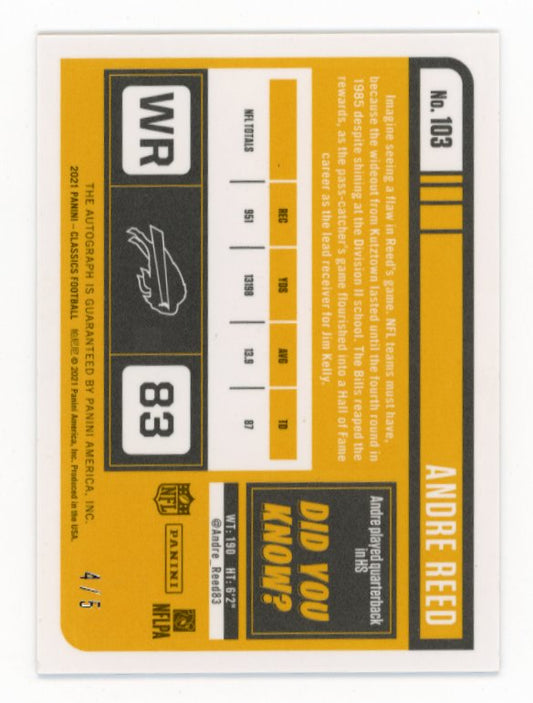 2021 Panini Classics Andre Reed #103 - Autograph #/5