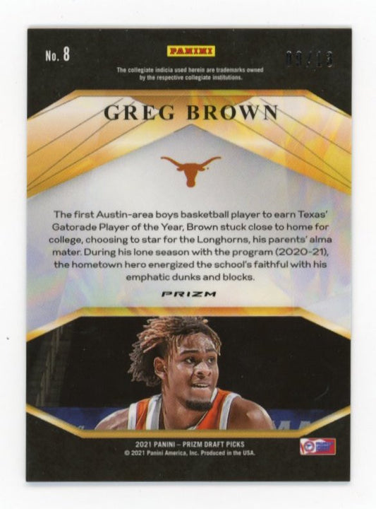2021 Panini Prizm Draft Picks Greg Brown RC #8 - Blue Shimmer #/13 Longhorns