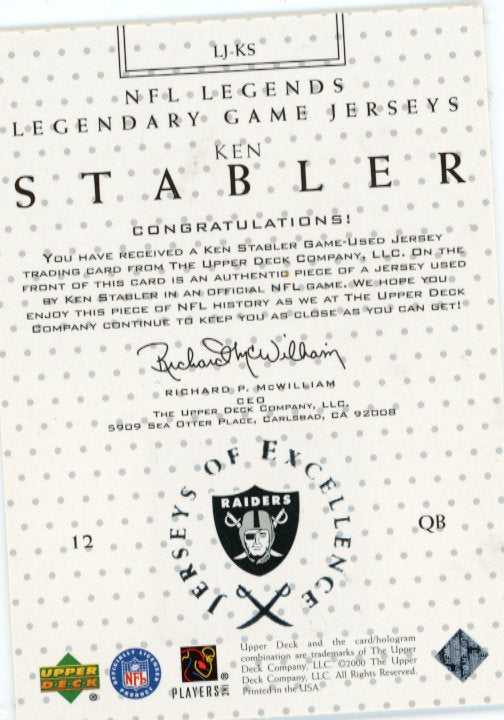2000 Upper Deck Ken Stabler #LJ-KS - Patch Raiders