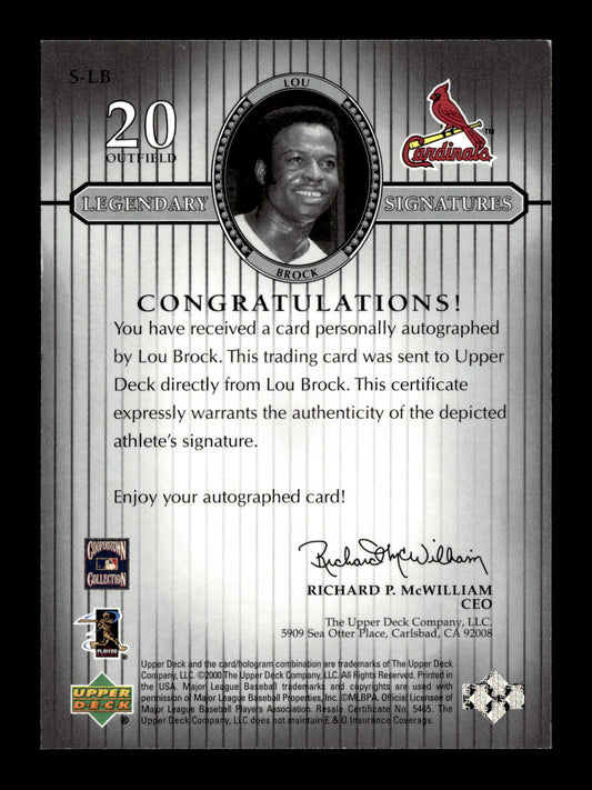 2000 Upper Deck Legends Lou Brock #S-LB Legendary Signatures St. Louis Cardinals