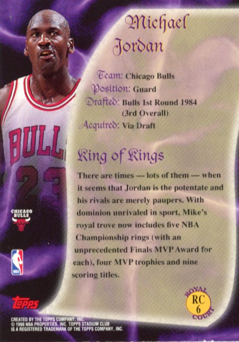 1998 Topps Stadium Club Michael Jordan Royal Court King of Kings #RC6 - Bulls