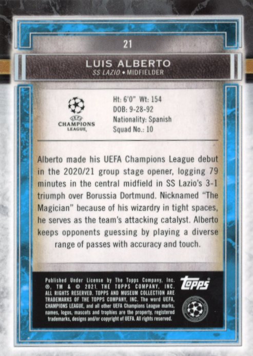 2021 Topps Museum Collection Luis Alberto #21 - Gold #/50 SS Lazio
