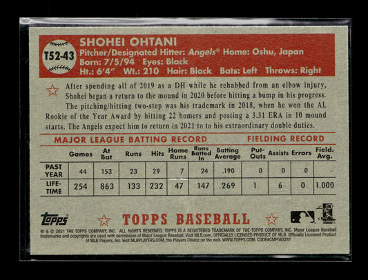 2021 Topps Shohei Ohtani #T52-43 1952 Topps Redux Los Angeles Angels