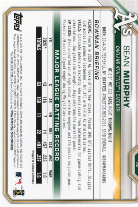 2021 Topps Bowman Sean Murphy #76 - Red #/5 A's
