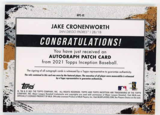2021 Topps Inception Jake Cronenworth RC # APC-JC - Autograph Relic Red #/25 Padres