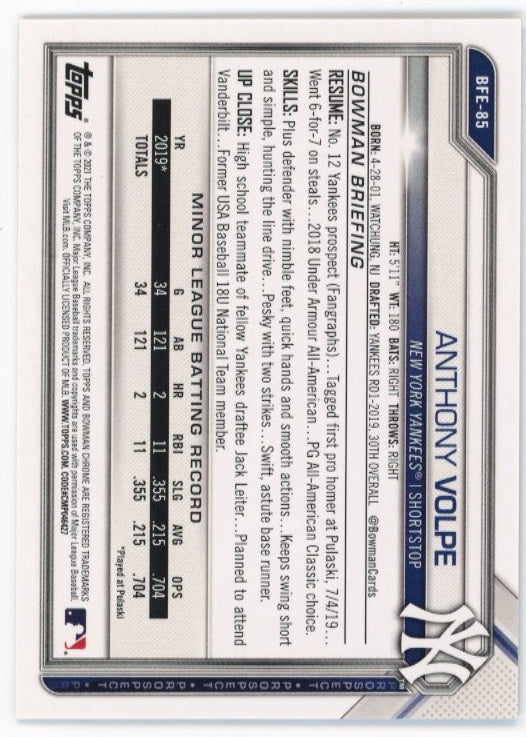 2021 Topps Bowman Anthony Volpe 1st Edition #BFE-85 - Blue #/150 Yankees