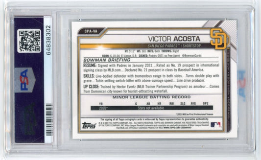 2021 Topps Bowman Chrome Victor Acosta 1st Bowman #CPAVA - Prospects Autographs PSA 10 Padres
