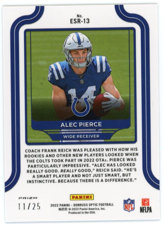 2022 Panini Donruss Optic Alec Pierce Elite Series RC #ESR-13 - Purple #/25 Colts