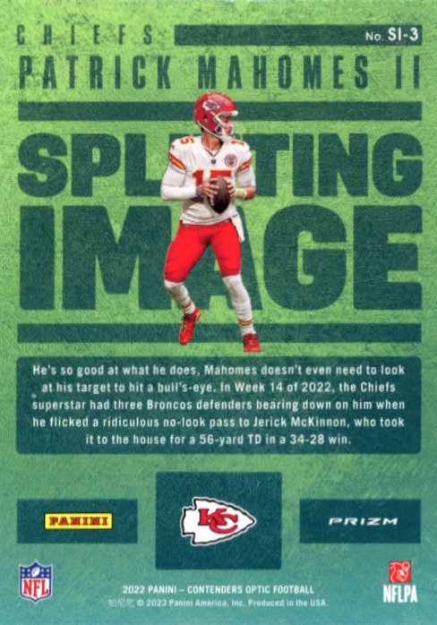 2022 Panini Contenders Optic Patrick Mahomes #SI-3 - Splitting Image SSP Chiefs