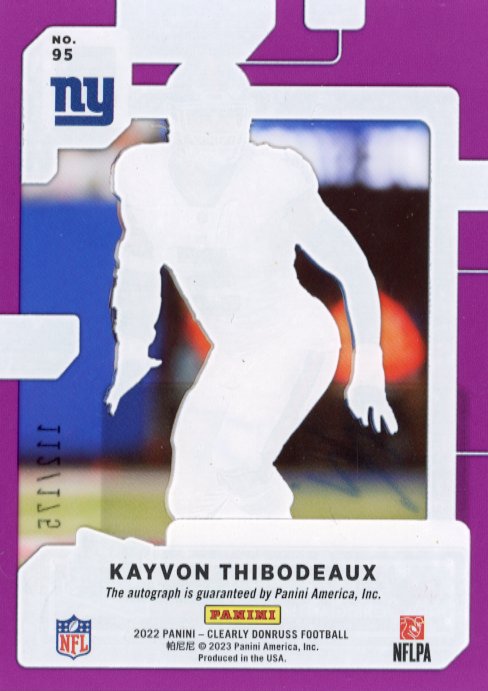2022 Panini Clearly Donruss Kayvon Thibodeaux RC #95 - Purple Autograph #/175 Giants