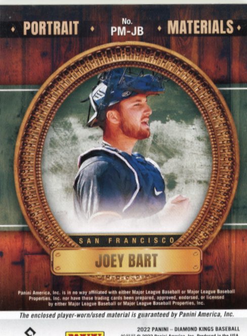 2022 Panini Diamond Kings Joey Bart #PM-JB - #1/1 Dual Patch Giants