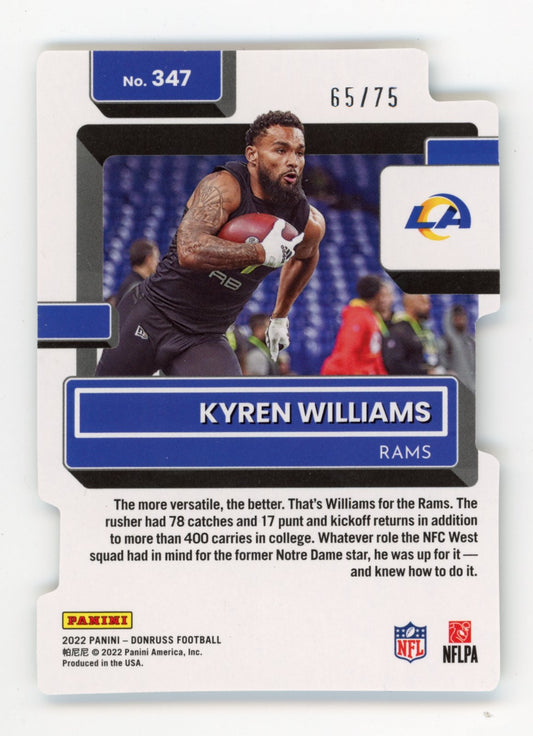2022 Panini Donruss Kyren Williams Rated Rookie #347 - #/75 Die-Cut Rams