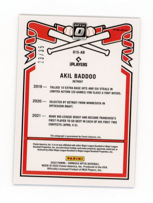 2022 Panini Donruss Optic Akil Baddoo #81S-AB - Autograph #/35