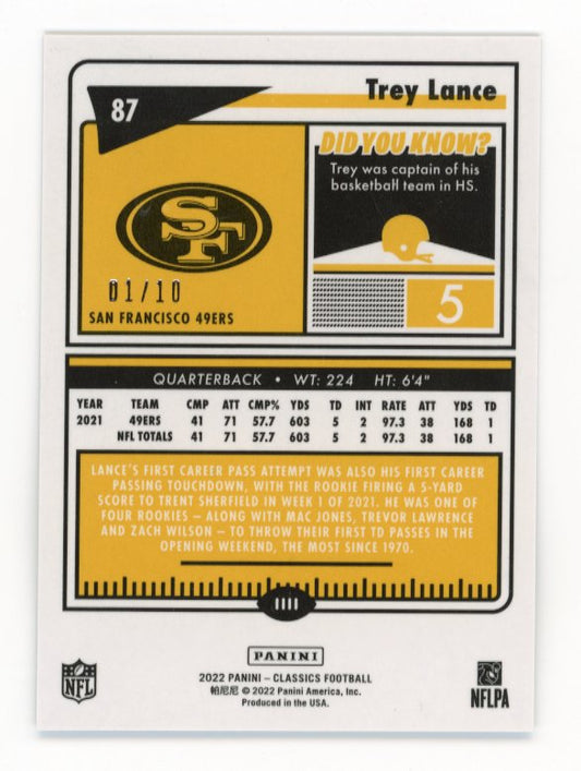 2022 Panini Classics Trey Lance #87 - #/10 49ers