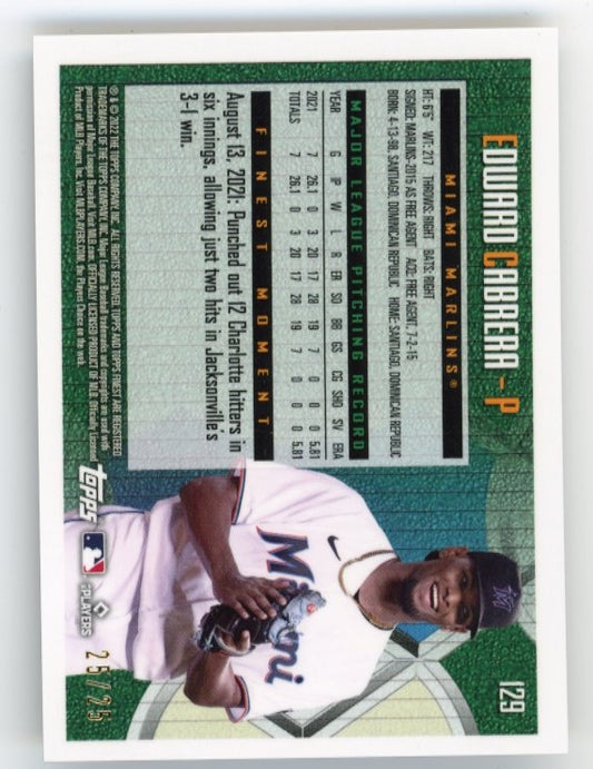 2022 Topps Finest Edward Cabrera RC #129 - Black #/25 Marlins