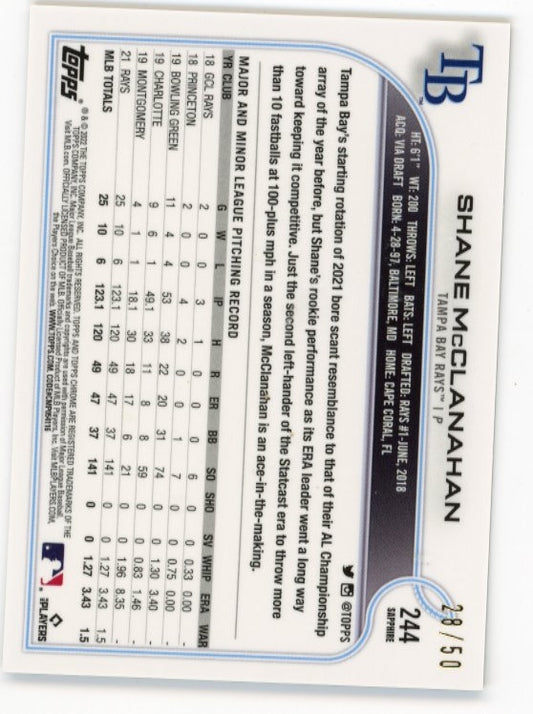 2022 Topps Chrome Shane McClanahan #244 - Gold Cracked Ice #/50 Rays
