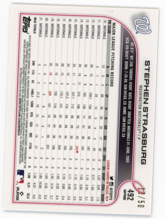 2022 Topps Chrome Stephen Strasburg #492 - Gold Cracked Ice #/50 Nationals