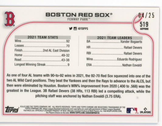 2022 Topps Chrome Sapphire Boston Red Sox #519 - #/25 Orange
