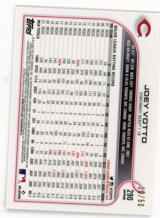 2022 Topps Chrome Sapphire Joey Votto #290 - #/50 Gold Reds