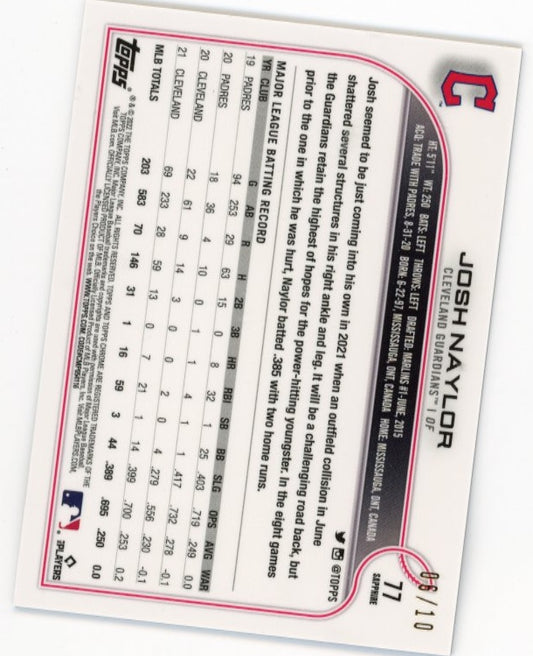 2022 Topps Chrome Sapphire Josh Naylor #77 - #/10 Purple Guardians