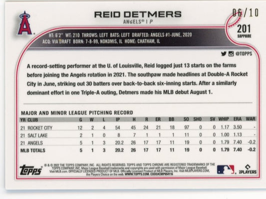 2022 Topps Chrome Sapphire Reid Detmers RC #201 - #/10 Purple Angels